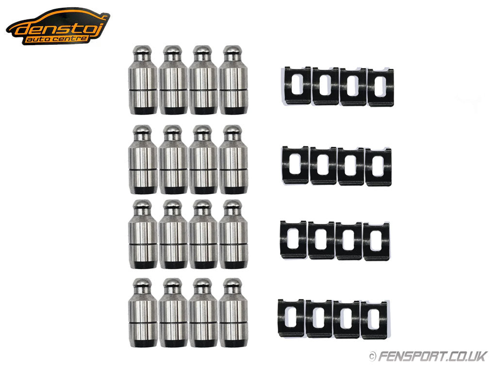 The Denstoj Rocker Retainer kit consists of 16 x hydraulic lash adjusters with a retaining groove for the 16 x sprung steel clips.